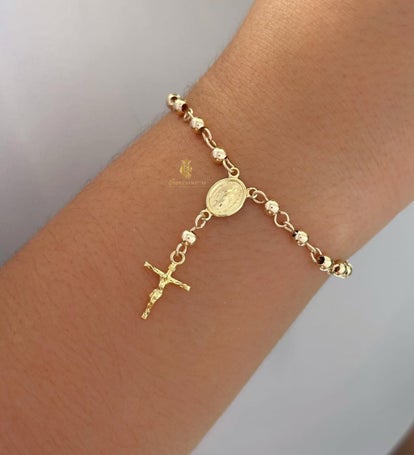 Hermoso brazalete con un dije de una cruz, bastante sencillo y bonito a la vez.